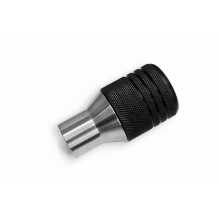 The combination of these two materials yields a knob that can be held in any temperature, but also has a heavy weight for solid shift feedback. Plus, it looks very nice and compliments the black and silver trim in the car. There are many options that can be added to this knob, such as grooves, knurling (shown in picture), a thumb recess on top, or burnt finished on the steel. Email me for customization.